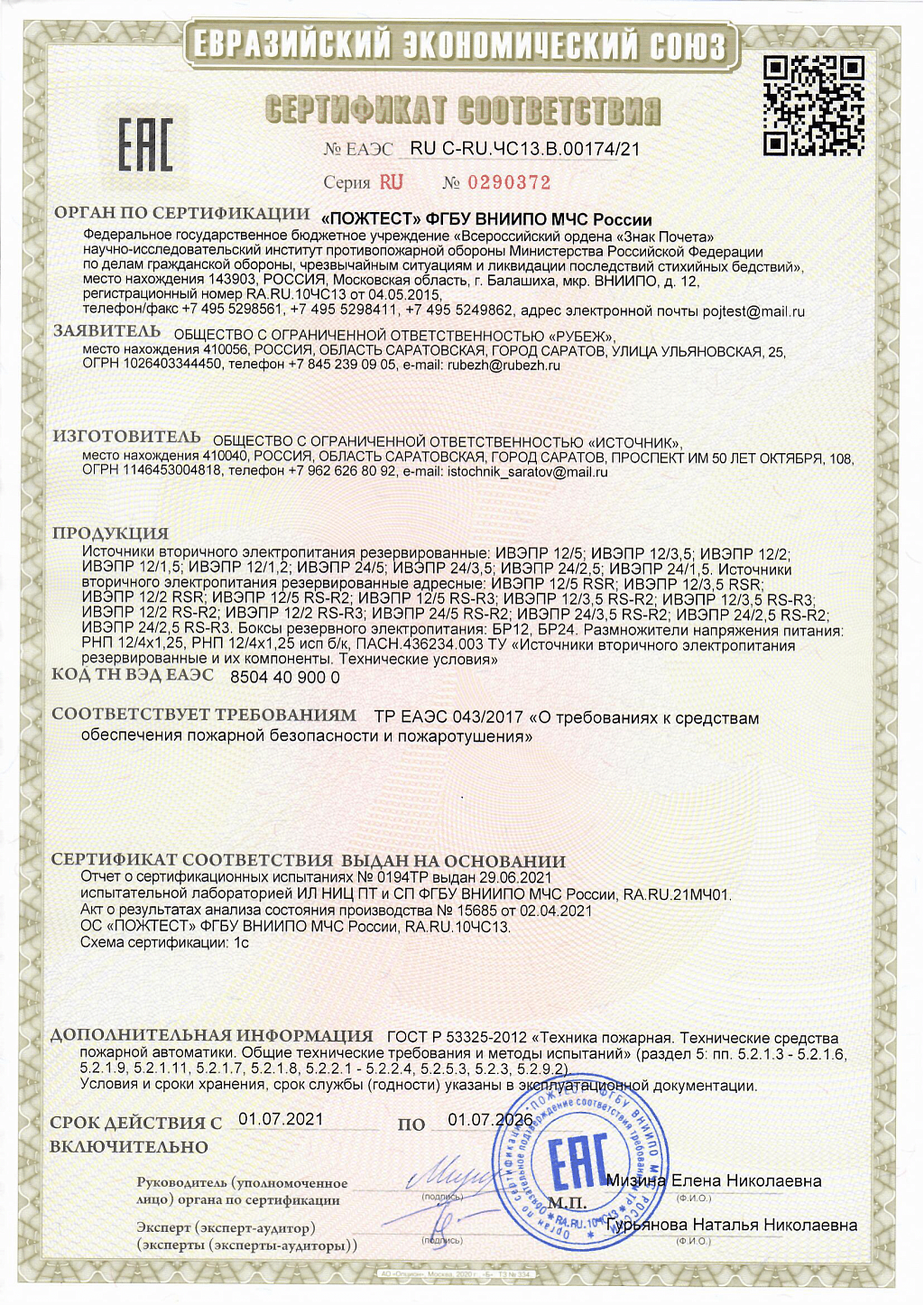 Источник питания номинальным постоянным напряжением 24 В и выходным током до 3,5 А. Предназначен для стабильного бесперебойного электропитания систем охранной и пожарной сигнализации, пожаротушения, дымоудаления и оповещения.