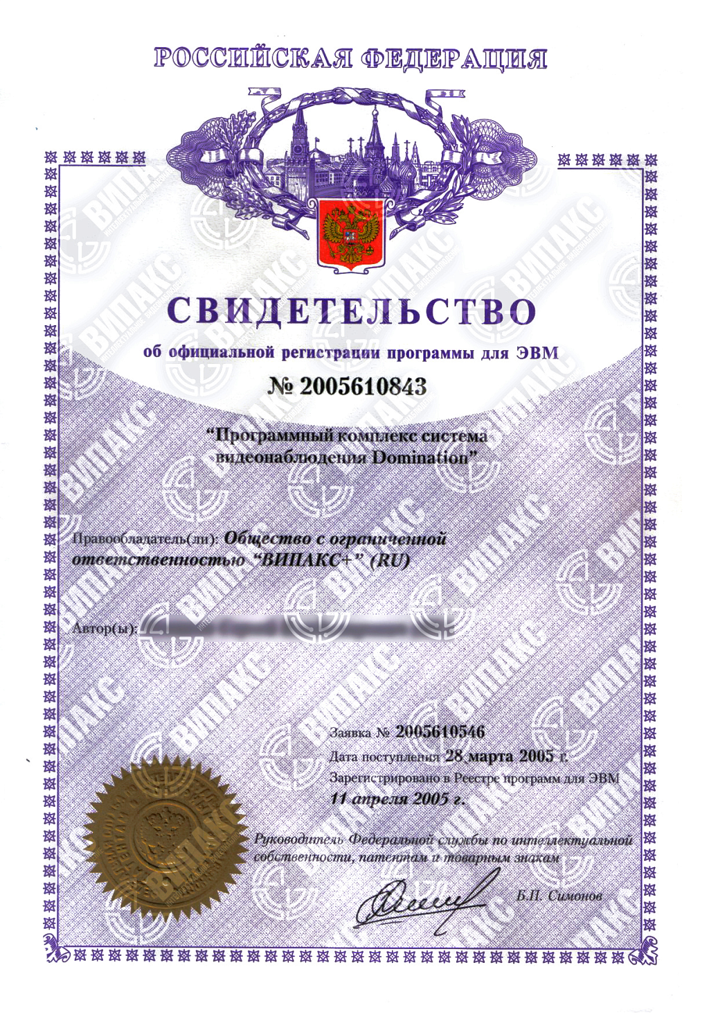 o клиентское ПО «Domination» - Реестровая запись №9606 от 15.03.2021