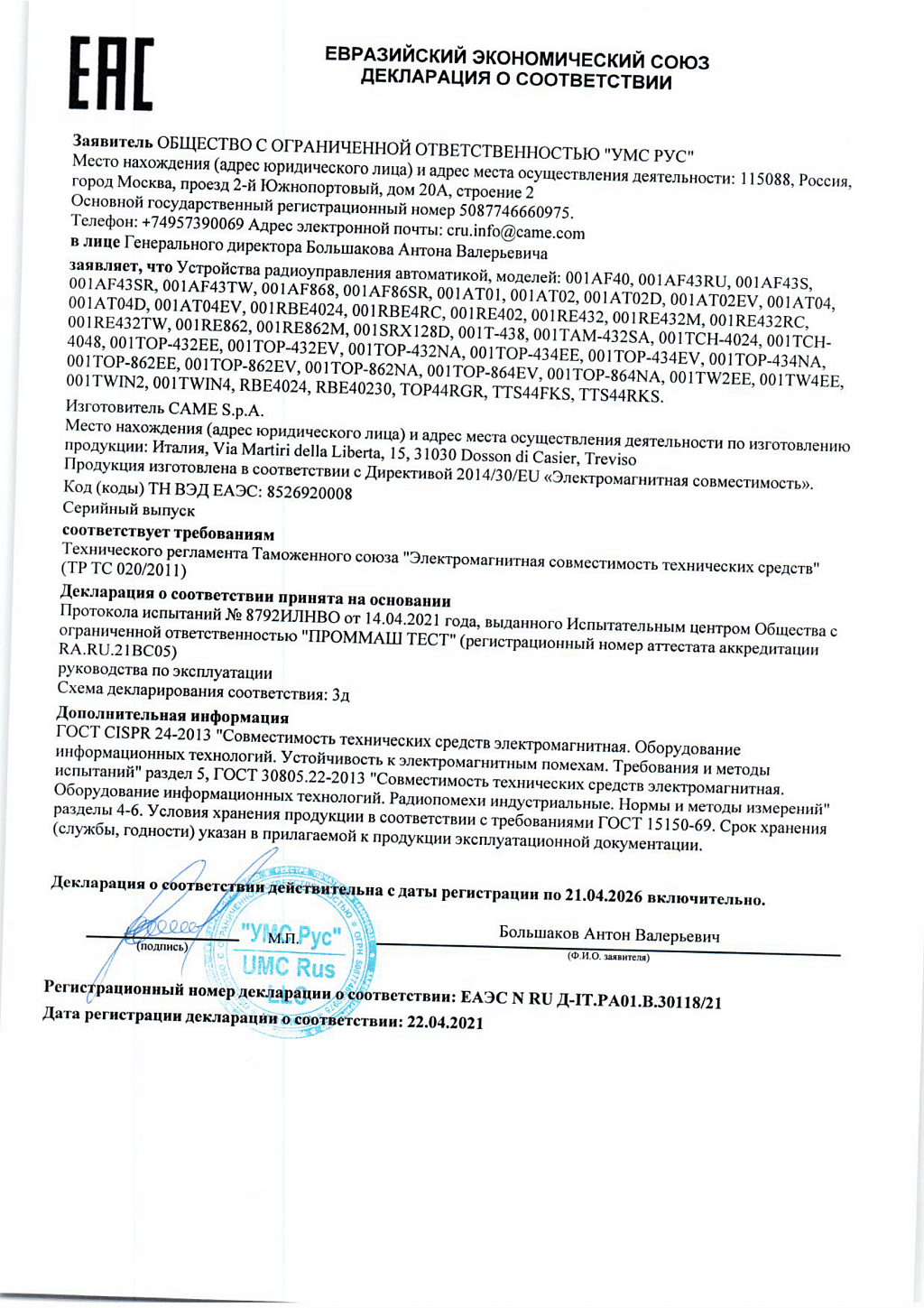 Производитель: CAME