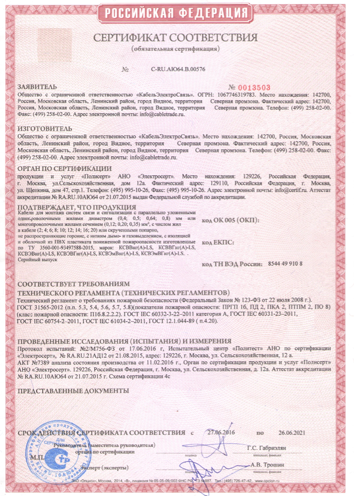 • Производитель Кабельэлектросвязь