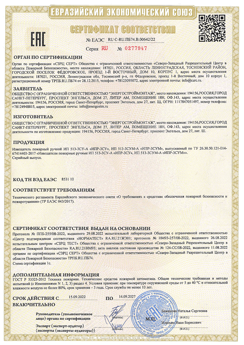 Предназначен для обнаружения загораний, сопровождающихся появлением дыма в закрытых помещениях зданий и сооружений различного назначения. При возникновении дыма в зоне расположения извещателя он формирует электрический сигнал о возникшем пожаре, регистрируемый приемно-контрольным прибором.