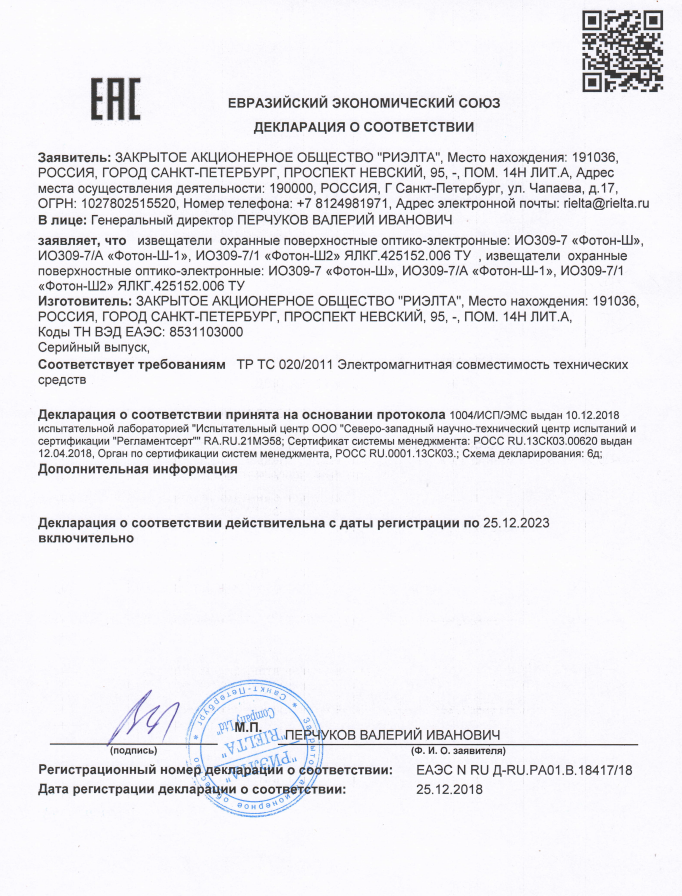 • Электропитание извещателя осуществляется от источника постоянного тока номинальным напряжением 12 В.