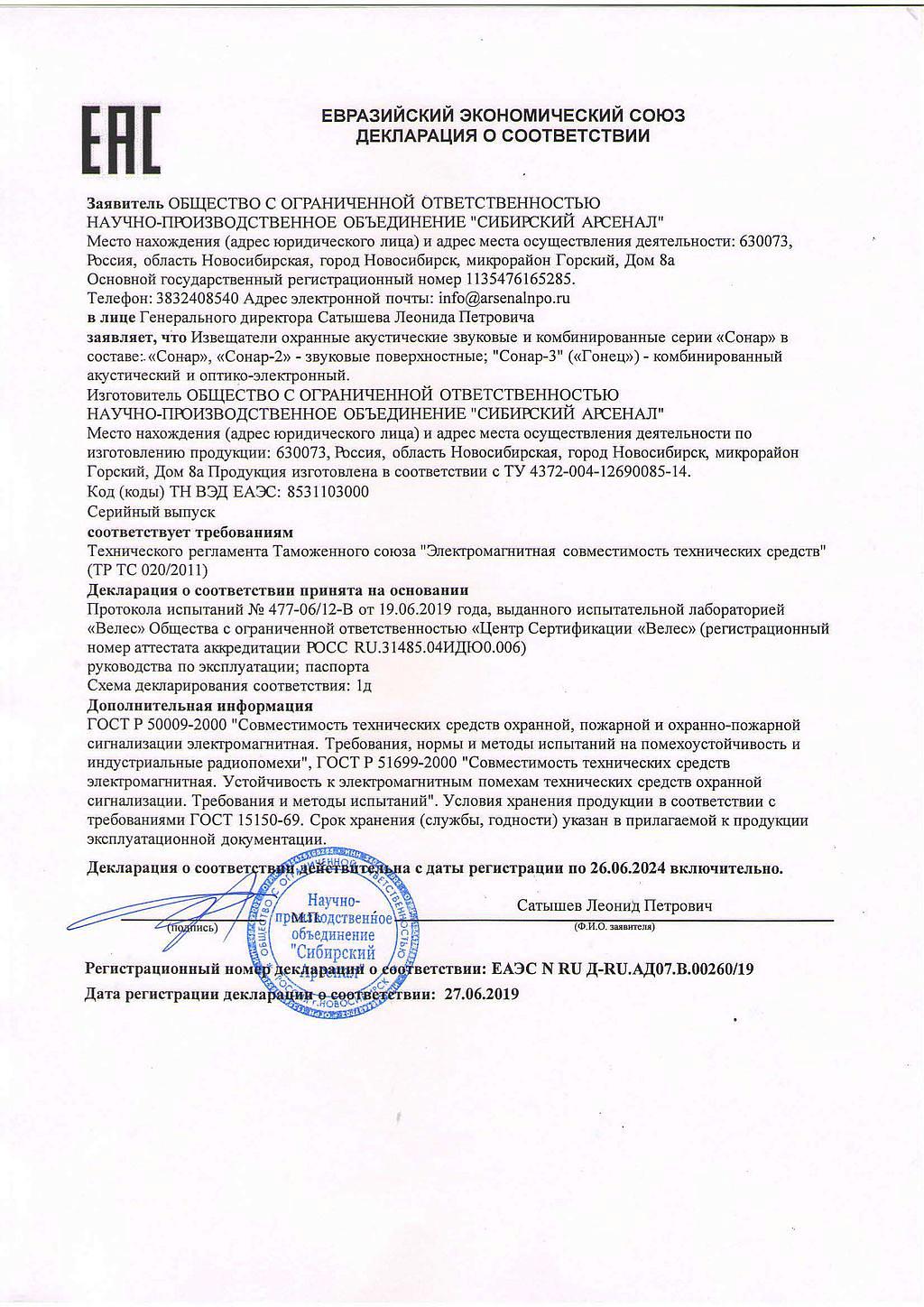 Извещатель ИО 329-17 "Сонар" Сибирский арсенал купить в Казани в компании ВИПАКС.