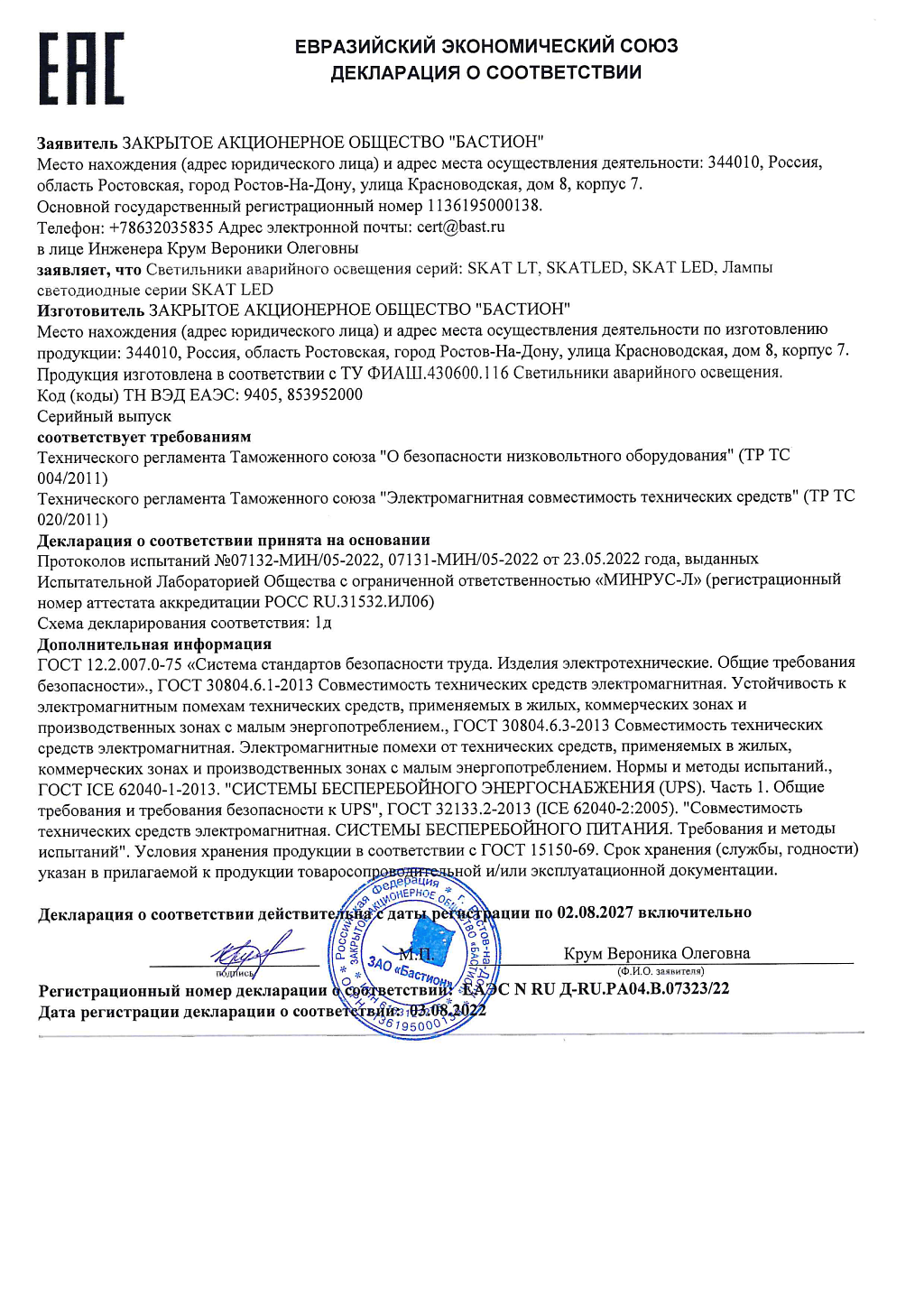 Лампа аварийного освещения SKAT LT-60 Li-ion Бастион купить в Казани в компании ВИПАКС.