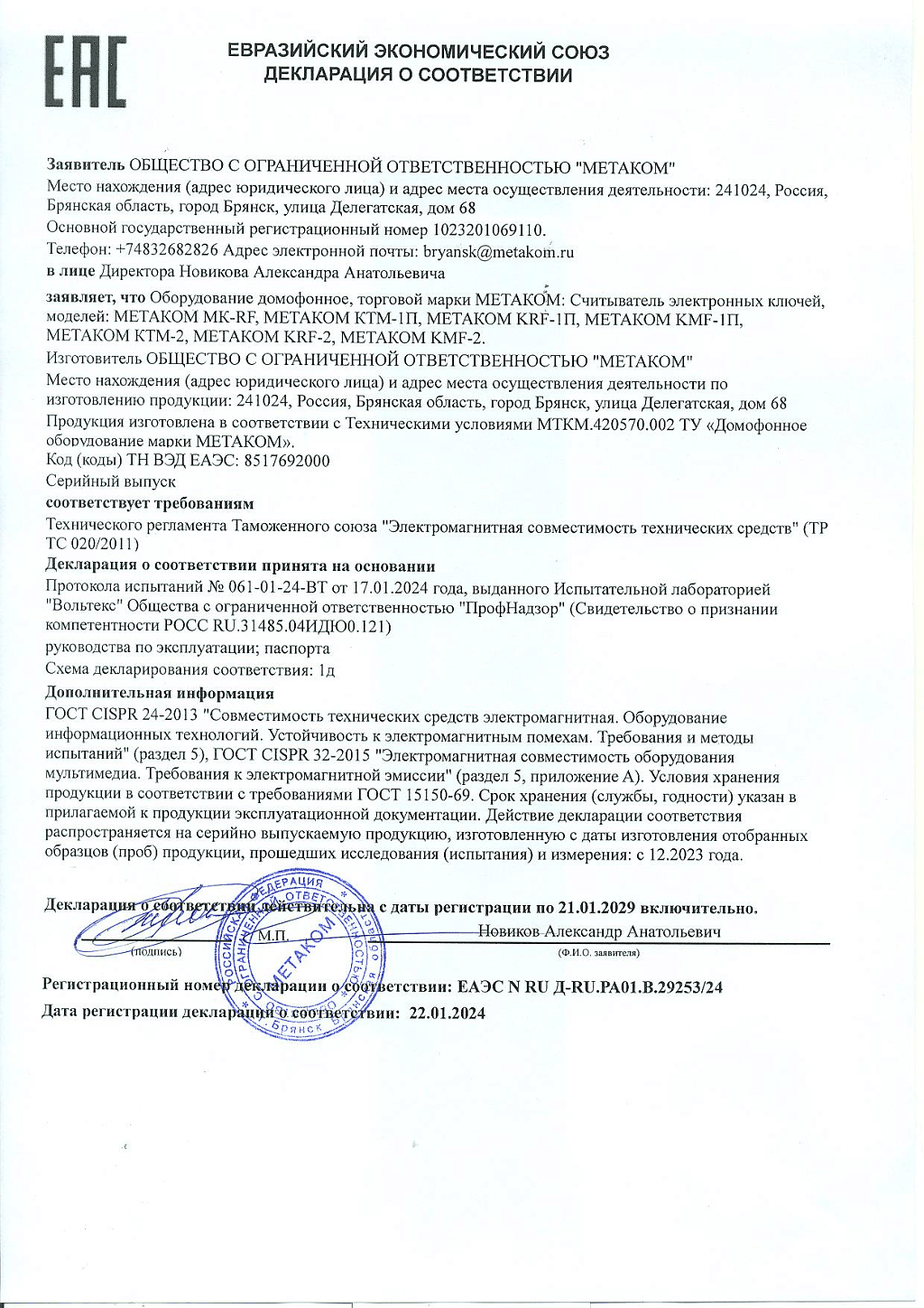 Трубка координатная, переговорная, используется для домофонов Метаком, Визит, Элтис, Цифрал, Raikmann, с ночным отключением. ТКП-06М устанавливается в квартире абонента и используется для звукового вызова абонента через вызывное устройство домофона, связи посетитель-абонент и дистанционного открывания входной двери пользователя. Устройство состоит из трубки и подставки. Подставка монтируется в вертикальном положении при помощи крепежного комплекта. В дежурном режиме трубка должна быть уложена на подставку.