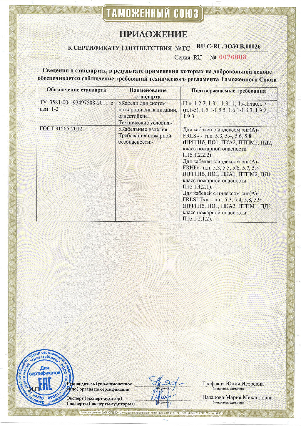Предназначен для одиночной и пучковой прокладки в современных системах охранно-пожарной сигнализации, а также в других системах управления на объектах повышенной пожарной опасности (атомные электростанции, метрополитен, суда, промышленные предприятия, школы, больницы, офисные помещения, высотные здания). Эксплуатируется внутри и вне помещений, при условии защиты от прямого воздействия солнечного излучения и атмосферных осадков.