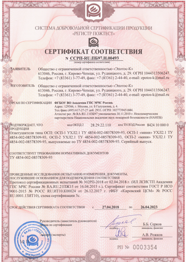 Самосрабатывающие огнетушители ОСП-1 предназначены для тушения пожаров класса А, В, С без участия человека, а также установок под напряжением.