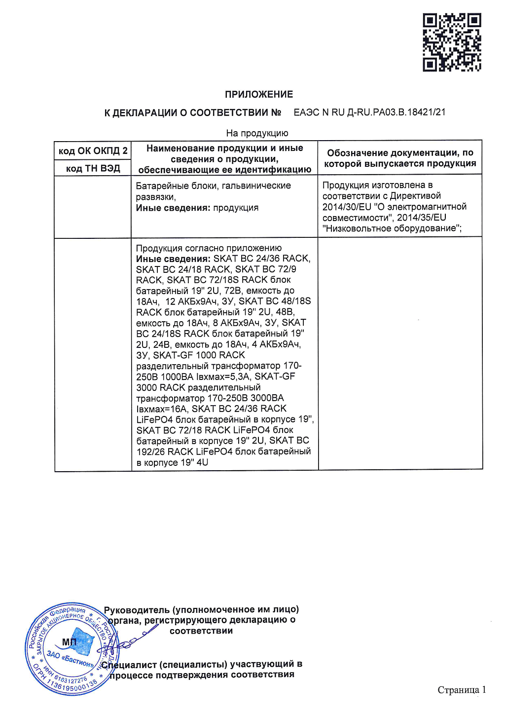SKAT BC 24/18 RACK предназначено для совместной работы с источником бесперебойного питания SKAT-UPS 1000 RACK и размещается в 19” телекоммуникационных шкафах или стойках.