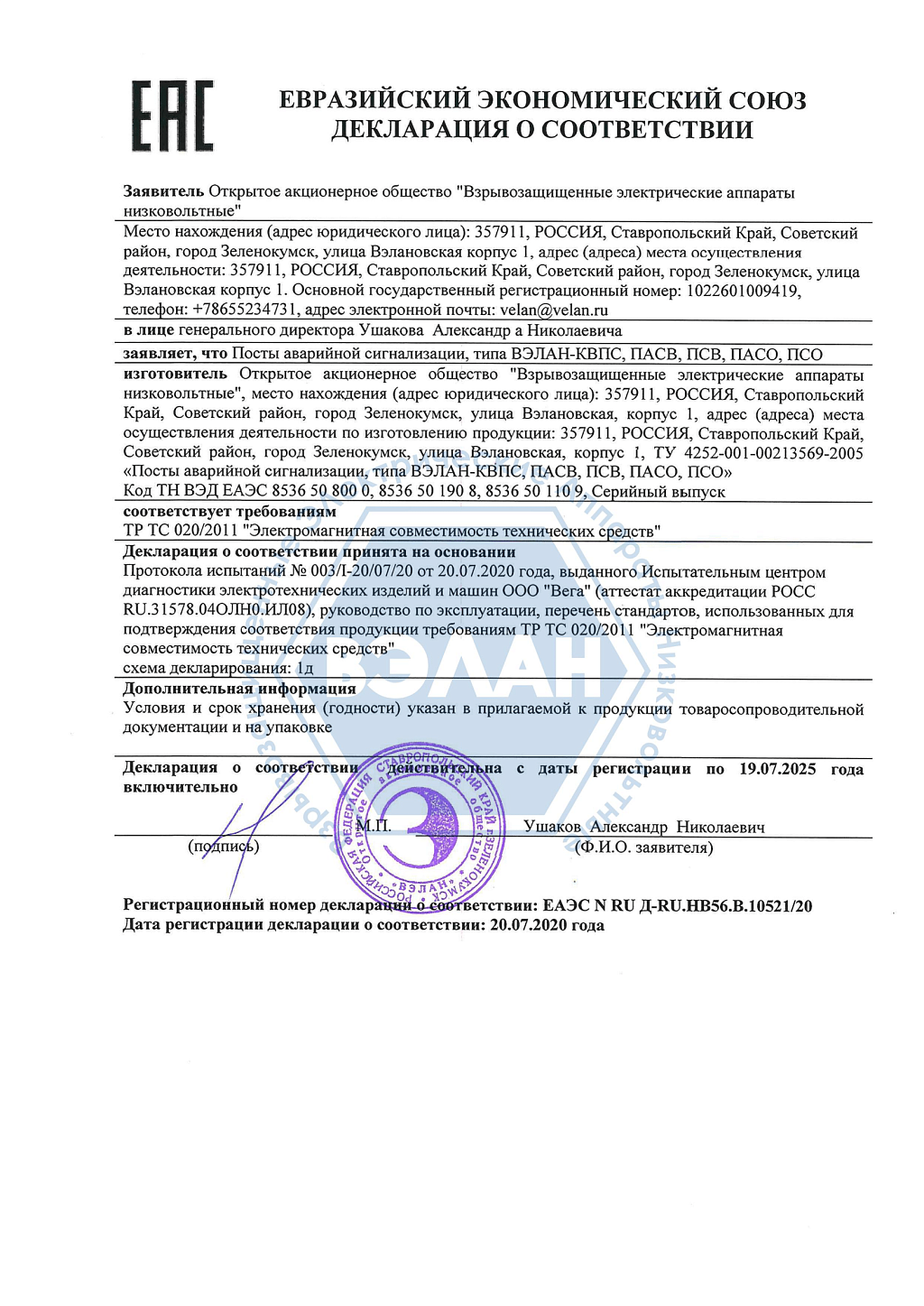 Пост аварийной сигнализации ПАСВ72-73-1Ж1К В2 Вэлан