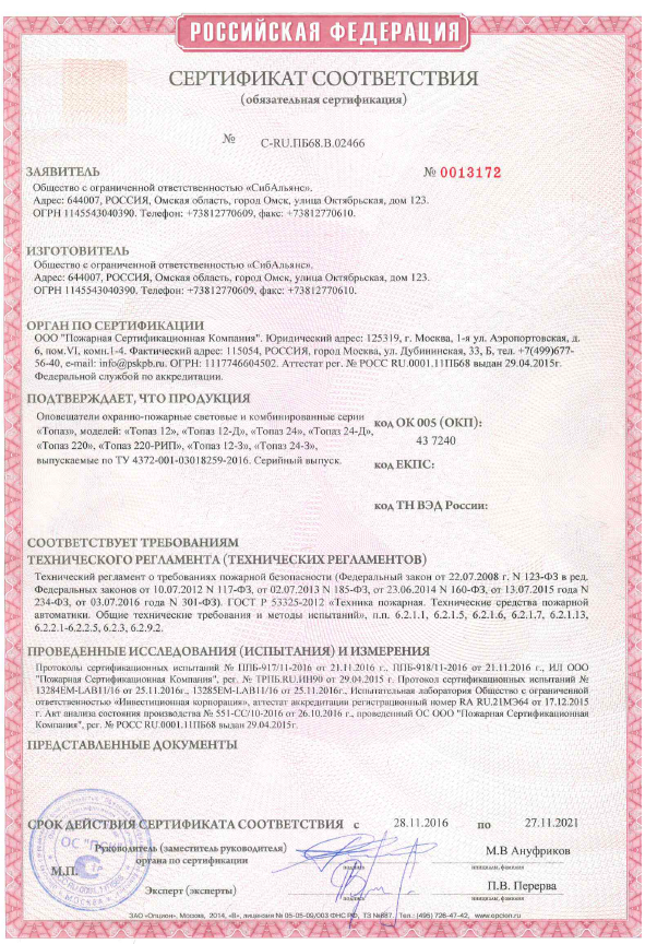 Оповещатель охранно-пожарный световой Оповещатель Т-12В ОСНОВА SLT